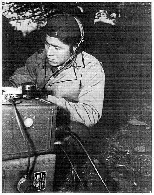 "Code Talker translating over radio" (Navajo Code Talkers).