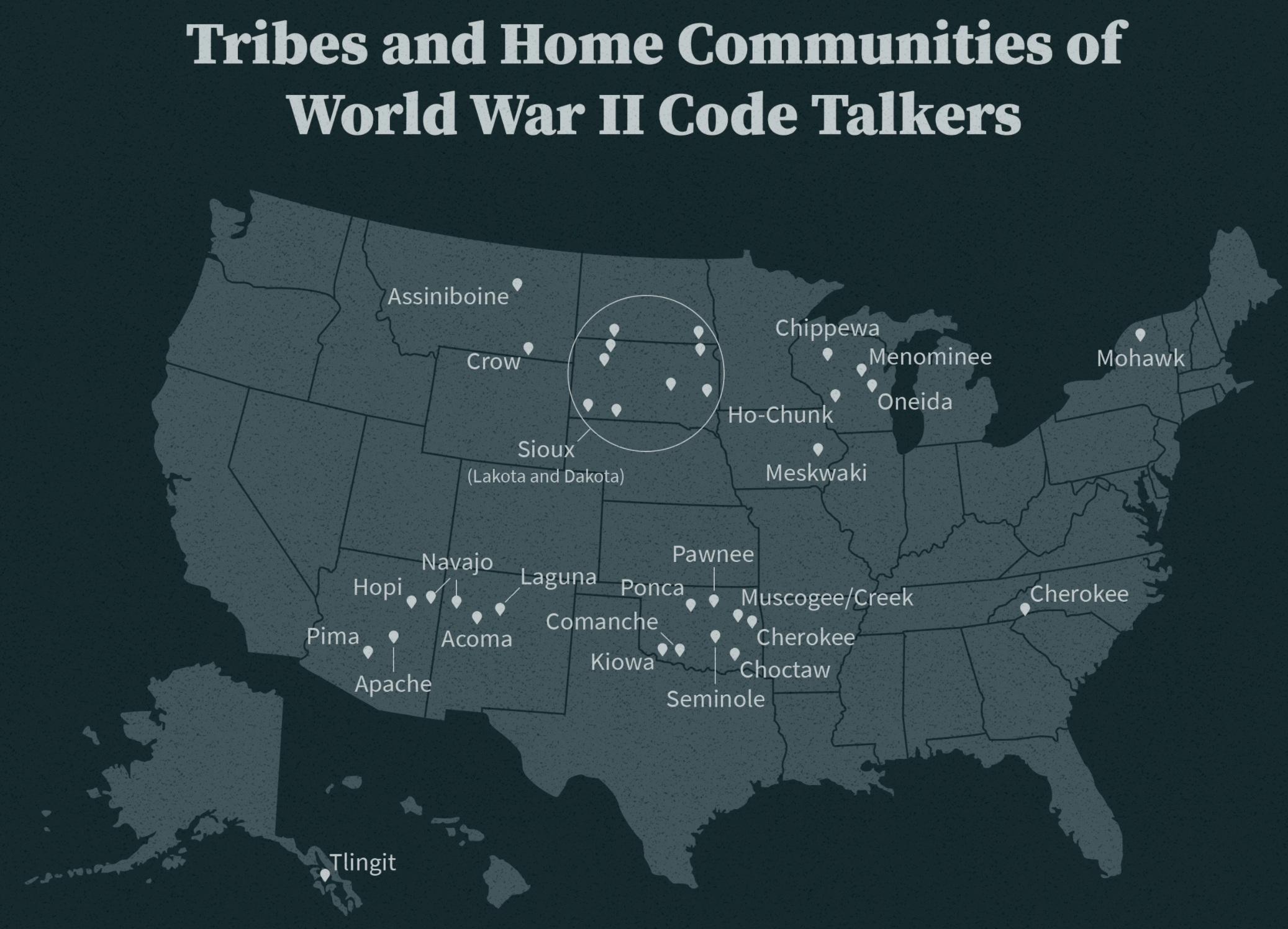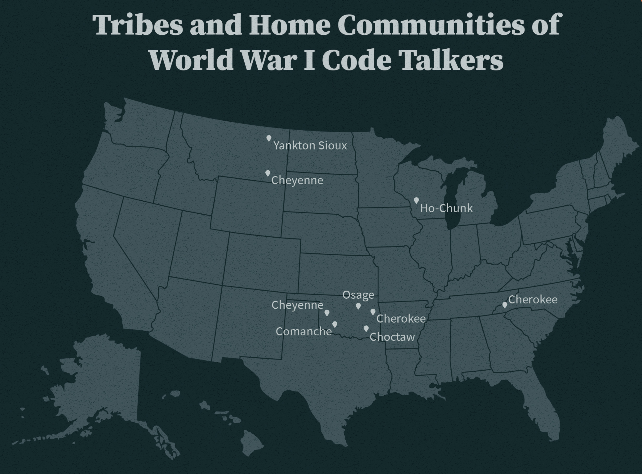 The idea of using Native American languages as a basis for protecting U.S. military communication originated by chance during World War I with Company D of the 141st Infantry Division. The company enlisted the help of eight Choctaw Indians and sixty-eight Cherokee Indians to send messages in their native languages by telephone (Watkins; Meadows).